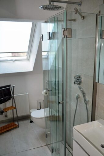 Die Glas-Duschabtrennungen von Panther Glas sind aus ESG der Glasstärke 8 mm gefertigt. Für jede Einbausituation erstellen wir eine millimetergenaue Lösung aus den passenden Glaselementen. Gerne beraten wir Sie in der Region Düsseldorf zu den besonderen Möglichkeiten einbaugenauer Glasduschen.